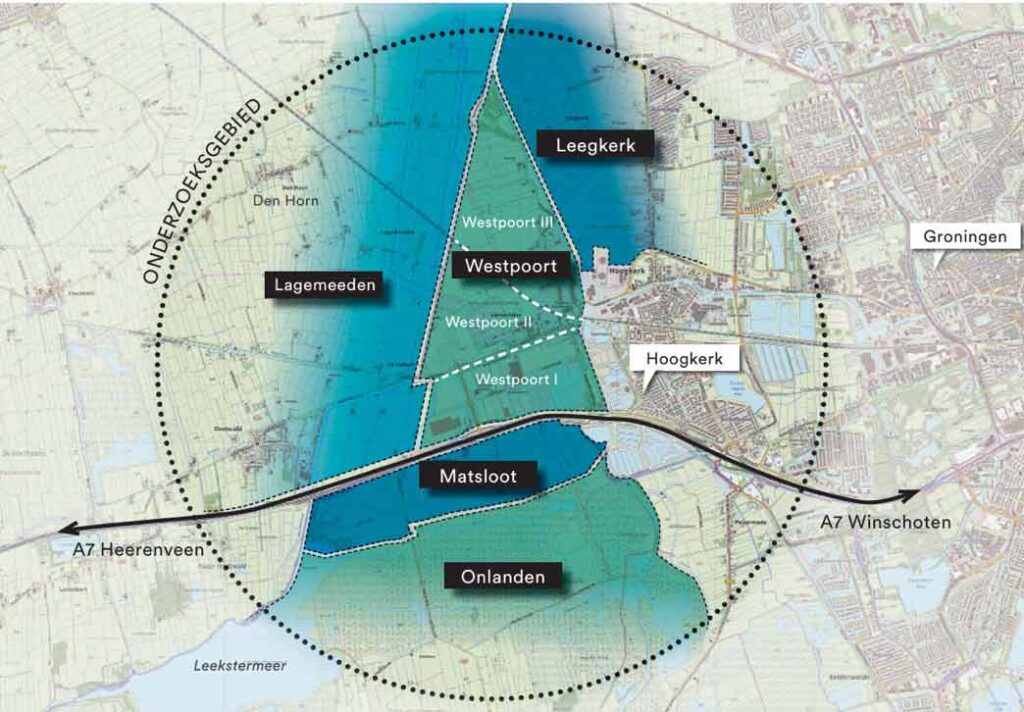 De totale ecologische verbindingszone loopt grofweg vanaf het Hoendiep, via de Zuidwending naar de Frieschestraatweg, langs de projecten Westpoort II en III. In de vergadering werd de wens uitgesproken om de zone van Westpoort III (van de spoorbrug naar de Weersterweg) zo snel mogelijk in te richten.  Dan kunnen de bomen en beplanting alvast groot groeien en een scherm/afscheiding vormen voordat er gebouwd wordt. Het idee is dat de forsere begroeiing het zicht op Westpoort III dan wat meer wegneemt. Het gaat ons bij de hele ontwikkeling echter niet alleen om uitzicht, maar ook om overlast van geluid, geur en licht zoveel mogelijk te voorkomen of beperken. Ook is besproken of de groenstrook breder kan worden aangelegd en of het toegankelijk wordt voor wandelen. Dit is nog niet duidelijk. Meer informatie over de gebiedsontwikkeling is te vinden op de website van de provincie. Zie: Gebiedsontwikkeling Matsloot-Westpoort – Provincie Groningen